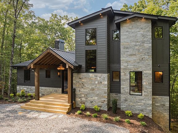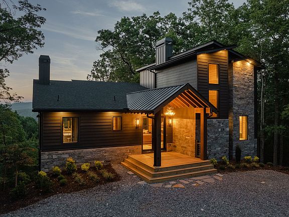 Unlike anything else in the Blue Ridge Mountains, this brand new construction contemporary chalet takes in stunning USNF views from both the warm and beautifully crafted rustic interior as well as the sprawling layered outdoor decks G this is what mountain dreams are made of! Complete with four bedroom suites, walk-in closets, marble showers, designer lighting, stacked stone fireplaces, gourmet kitchen with VIKING appliances, large wet bar, fold flat accordion living room doors, FIBER INTERNET and sold fully furnished! Outdoor decks complete with large fireplace, observation area, and stunning outdoor dining space. Terrace level den is shared with the two basement bedroom suites and their own large party deck. Sitting on approx. 13 private acres with a gated entrance and backing up to National Forest, this home is truly on a caliber of its own. With the option to build another cabin on the property, guest house, carriage house or for a pool and pool house -- there's room to grow! Minutes away from Lake Blue Ridge and Downtown Blue Ridge, this home combines the privacy you'd expect from a luxury retreat all while meeting the convenience of proximity to the area's most sough-after destinations for full-time or second home living. Call today!