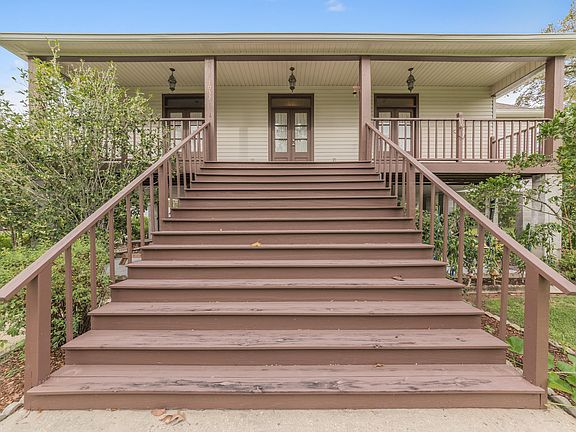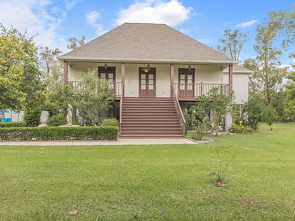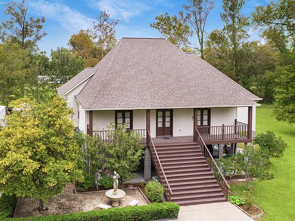 You can find the peaceful retreat that you've been looking for at 1032 River Ridge Road. This beautiful custom-built home is sure to impress you with an abundance of extras! Entering the front door, your eyes will be drawn to the 13-foot ceilings embellished with beautiful crown molding. With rich Australian cypress wood floors and a wall of windows, the living room is grand, yet still cozy. The kitchen space features gorgeous custom wood cabinets, an island with a prep sink, and a large walk in pantry with enough space for the largest of grocery lists. The master bedroom opens to a master bath complete with a beautiful cast iron slipper clawfoot tub, custom vanity, separate shower and his and hers closets. The home includes two additional bedrooms with walk in closets and an office space with your very own wet bar. Sitting on two large lots and nine feet above the ground, another amazing feature of the home includes the various outdoor living space. Two open porches, a screened porch, firepit area and covered patio space with a half bath offer plenty of room for boiling crawfish, BBQing, entertaining or just kicking back and relaxing. The grounds are beautifully landscaped with flowers, shrubbery and an assortment of trees including cypress, oak, sweet olive, weeping willow and magnolia trees. Various fruit trees including apple, plum, satsuma and lemon allow you to take care of that sweet -tooth effortlessly while strolling the grounds. Walking distance to the river and some of the greatest fishing and just minutes from I-10, this home allows you to detach from the daily world and experience life at its best! Welcome home!