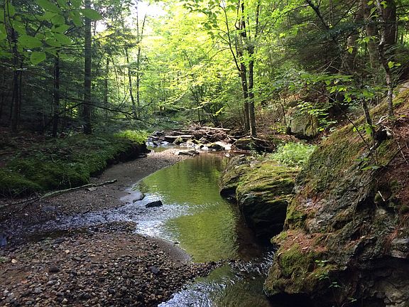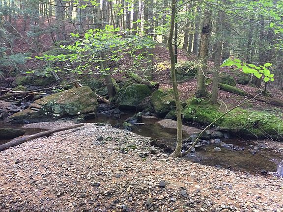 10.2 acre building lot situated on the Snipe Ireland road along a beautiful section of trout stream in the sought after town of Richmond. The shared access includes a bridge over the brook leading to the proposed building site with plans for a 3 bedroom home, driveway, drainage, well, traditional septic, and power approved by the town of Richmond. This wooded and dynamic parcel is perfectly suited for someone wishing to build a home integrated into the forest amidst rolling hills and the sounds of water burbling in the brook below. A short hike up the hill leads to a flat area where Camel’s hump can be seen through the trees. The longest boundary line is shared with over 1,500 conserved acres. The woods are home to wildlife and hardwood trees. It is not far from the brook’s beautiful waterfall and down the street from Richmond Pond.