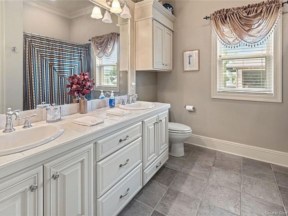 This custom-built and impeccably maintained 4-bedroom, 3 full and 2 half.5-bath home combines thoughtful design, quality finishes. Constructed in 2004, it features 12-foot ceilings in the main living areas, triple crown, and abundant natural light throughout. The kitchen offers both functionality and style, complete with granite countertops, a spacious island with bar seating, a propane range, with double oven, and generous cabinet storage. It flows seamlessly into a cozy breakfast nook and a formal dining room ideal for entertaining. The living room includes custom built-ins, surround sound, and a propane fireplace--ideal for relaxed evenings at home. The primary suite boasts hardwood flooring, a walk-in closet with built-ins, and a luxurious ensuite featuring double vanities, a soaking tub, walk-in shower maxed out built-ins in the walk-in closet. Two guest bedrooms share a double-vanity bath, while the upstairs bonus room--with its own full bath--serves well as a fourth bedroom, office, or flex space. Outside, enjoy a fully fenced backyard with a 6-foot saltwater pool (new liner in 2020; new pump and salt system in 2025), a covered patio with fans, and a built-in propane hookup for grilling. The attached three-car garage encompasses a bay which can be used for a workshop and/or golf cart storage and includes a half bath and kitchenette--perfect for guests, hobbies, or entertaining. Additional highlights include a spacious laundry room with utility sink, a two-car garage with storage.. Conveniently located near dining, shopping, and schools. This property offers the complete package--comfort, space, and timeless style. Schedule your private showing today. Flood Zone: X, Annual property tax: $2696; No HOA Dues. The seller is providing an APHW "Supreme" Home Warranty; see supplements!