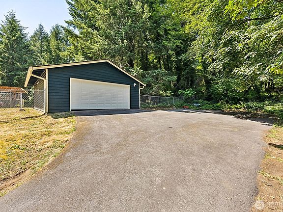 Discover great value and a serene, 1 acre retreat with a miles from nowhere feel, yet close to lake St Claire boating fun, services, SE Lacey or Hawks Prairie shopping, and easy routes to I-5/JBLM. Enjoy 1696 s/f of one-story living up a gentle slope, to a private, terraced, fully-fenced yard with kennel, ample parking and 2-car detached garage. Pretty trees screen neighbors but offer plenty of sunlight for gardens! The spacious kitchen with eating space, pantry and laundry room, flows to a flexible-use dining area, open living room with wood stove, and a 3bdrm/1.75ba wing, with a large primary suite. Rich wood laminate floors throughout. Dine on the big deck or develop the front, peek-a-boo lake view. Bring your special touch. Potential.