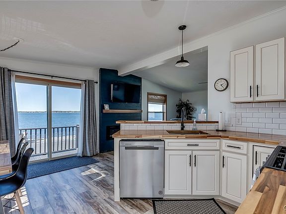 POINT SALUBRIOUS WATERFRONT STUNNER!!! This year-round Lakefront beauty is the perfect spot to enjoy the most beautiful sunsets in the area with amazing level waterfront. Newly renovated and located in Chaumont Bay, this property has been used as a very successful short-term rental and immaculately maintained. You can swim, fish, kayak, and gather around the fire on those incredible summer months on Lake Ontario. With a huge partially fenced yard, central air conditioning, and room to sleep up to 8 people you'll have all you need for a wonderful summer season. Rent it out or enjoy it yourself. If you'd like to use it year-round, no problem. This home is completely four season with forced air heat, cozy fireplace, on demand generator, water purification system, a shore-well, fully plowed road, and garage to park your vehicle out of the elements. You can go ice fishing or snuggle next to the fireplace if you'd rather stay in. One level living featuring stackable washer/dryer just off the kitchen and a gorgeous kitchen with tile backsplash, stainless appliances, and butcherblock countertops. There's seating at the bar or in the dining area. The spacious living room has spectacular views of the lake. All three bedrooms are spacious and have good sized closets. The largest of the bedrooms has a dual closet and an attached half bath. The full bathroom has storage for linens and a dual sink vanity. The home has luxury vinyl flooring throughout. Just minutes to several public boat launches and private marinas for boating. Lots of great local restaurant options in Chaumont, a winery within 2 miles, and just a short drive to the neighboring areas of Three Mile Bay, Cape Vincent, and Clayton. Don't wait, call or text today for a showing!