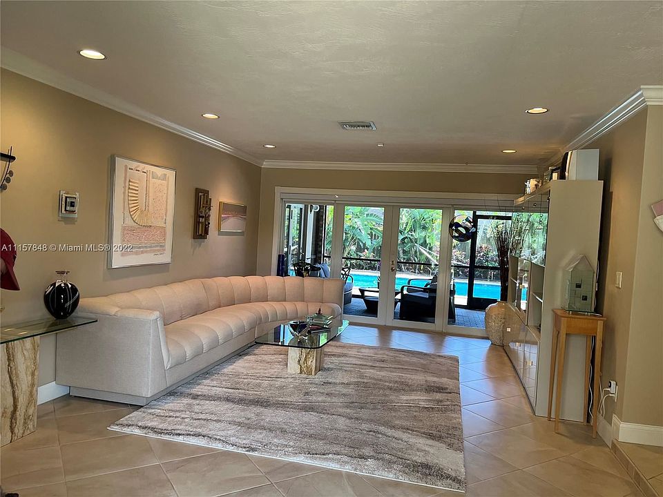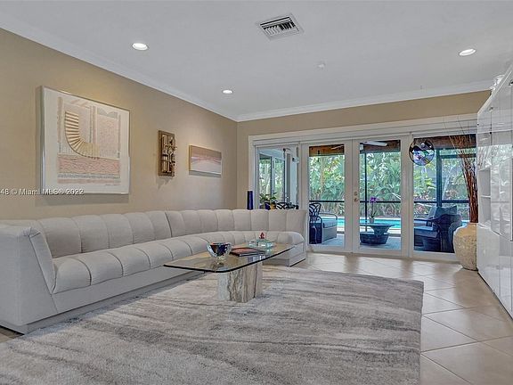Enjoy your privacy without giving up the perks of the city. Located on a cul-de-sac near-by a Golf course. This wonderful home has an open floor plan. When you enter you immediately see the lush pool patio area. It has a formal living room & dining room. Beautiful cherry wood kitchen cabinets, granite countertops, great eat-in area, stainless steel appliances and large windows overlooking the lush pool patio area. All bedrooms are good sized with wood like tile. All bathrooms have been updated. Master bathroom features a large shower, travertine floors and walls, modern double vanity and sinks. Spacious Master bedroom with a generous walk-in closet. There is a 4th den/ office or bedroom with a closet. Gas Generator, Oversized pool, Impact doors and hurricane shutter.