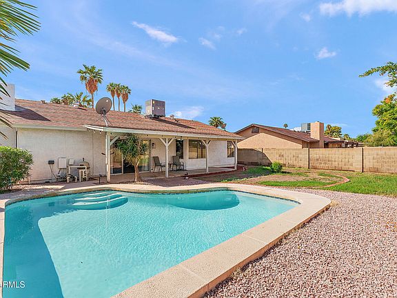 This is a warm, well-kept 3-bedroom and 2-bathroom home in Villa de Paz with no HOA! North/South exposure, updated kitchen with granite counters, and a living room anchored by an open fireplace. Major system peace-of-mind with a new HVAC (2025) and pool pump (2025) plus updated plumbing/piping and fixtures. The backyard features a sparkling pool and a new pool pump (2025), so it's ready for everyday use or weekend hosting. Close to I-10 and 101 for easy Valley access.