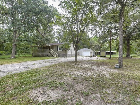 This is not a mobile! Awesome home ideally situated in Magnolia Bend on 5+ secluded cleared acres. Bring the horses and canoes to fish in the San Jacinto River across the street! This property is a nature lover s paradise! Miles horse trail, loads of deer and your own private fishing pond! 2 bedrooms 1 bath home with huge covered front and back porches!Oversized garage,fenced and horse ready! Check insurance availability with your provider. Property is located in the flood plain/way.