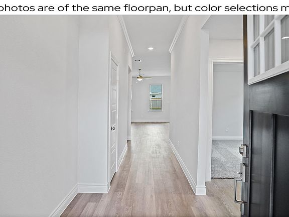 Welcome to the Taylor Plan! The kitchen is filled with upgraded cabinetry including soft-close doors and drawers, stainless-steel appliances, under cabinet lights, a stainless steel farmhouse sink, and a large island that overlooks the living room. The spacious primary bedroom has room for a sitting area, and the large walk-in closet leads straight to the utility room and a gorgeous primary bathroom where featuring a garden tub, double vanities and separate tiled shower. The secondary bedrooms have walk-in closets! The utility room connects to the master closet. Upgraded energy features like blown-in wall insulation, R38 insulation in the attic and a tankless water heater saves you money! Grand Oaks has a community pool, splash pad, gym and public golf course on-site.