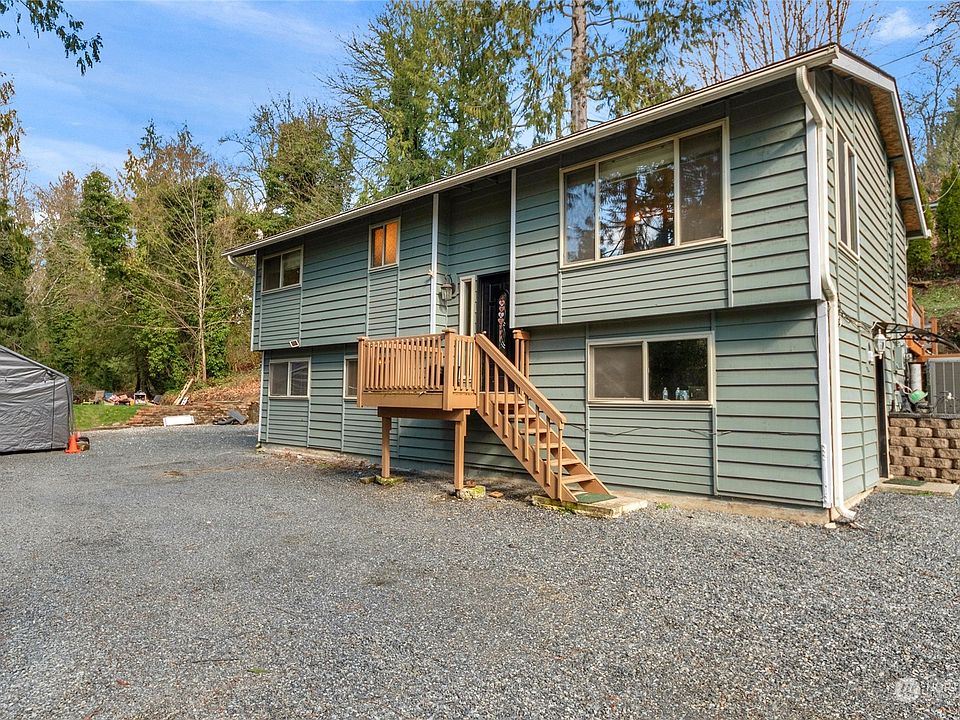 Don't miss this spacious, light-filled, 3 bedroom 1.75 bath home sitting on over an acre in Lake Stevens! Located on a corner lot in a quiet neighborhood just minutes to Lake Stevens schools, Lundeen Park, Frontier Village shopping center and all the amenities the community of Lake Stevens has to offer. Upon entry, the upper floor features all three bedrooms, the full bathroom, kitchen and dining room. Downstairs you'll find an oversized den, 3/4 bath, and a utility space for extra storage or hobbies. This home features a/c and an oversized back deck. The large property provides privacy, lots of parking for vehicles, a boat or RV and endless opportunity. Quick access to I-5 and HWY 9. Welcome Home!