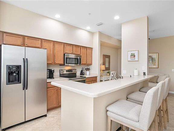 Welcome to 10321 Heritage Bay Blvd #1541, a beautiful top-floor condo offering breathtaking lake and golf course views in the prestigious Heritage Bay community. This 2-bedroom, 2-bathroom unit combines comfort, elegance, and resort-style living, making it the perfect seasonal or year-round retreat. GOLF MEMBERSHIP INCLUDED! Enjoy breathtaking sunsets from this recently updated 4th floor Brookside Terrace condo. This condo is turnkey and can sleep up to 8, with an amazing location next to one of five satellite pools. The condo features... Spacious Floor Plan: Open-concept living and dining area, perfect for entertaining or relaxing. Kitchen: Fully equipped with stainless steel appliances, and ample cabinetry. Master Suite: Features a two large walk-in closets, en-suite bathroom with dual vanities. Guest Bedroom: Offers privacy and convenient access to the second full bathroom. Hard floors: Tile floors throughout. Vinyl plank flooring in both bedrooms. Keurig coffee maker and a traditional coffee maker for your personal preference. Sleeping Arrangements: King bed in the master suite and 2 twin beds in the 2nd bedroom. Screened Lanai: Relax and take in stunning views of the lake and golf course. In-Unit Laundry: Washer and dryer included for added convenience. Carport Parking: Reserved covered space included. Monthly Rates Vary. *Off-season Rate: $4500. **High Season Rate: $6850