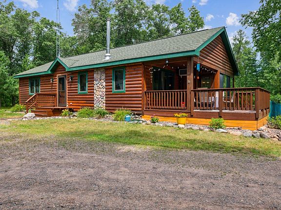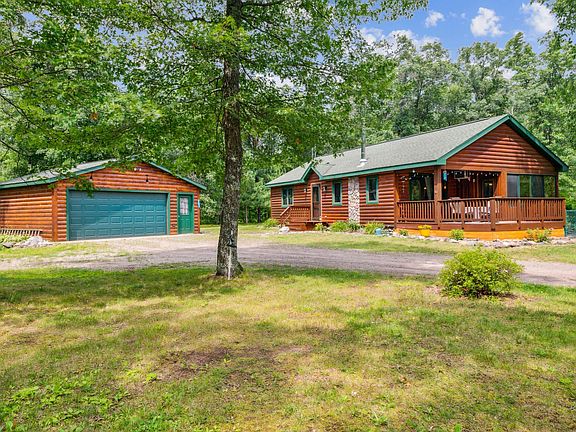 Beautifully updated get away! 5+ wooded acres near the Clam River Flowage that leads to the lake and on the ATV and snowmobile trails and bordered by 100s of acres of county land. All new flooring, quartz countertops, new SS appliances, completely updated and furnished bunkhouse and insulated porch! The garage is insulated and heated and there is an additional shed and a fenced yard for your pets or garden. Come see this lovely retreat!