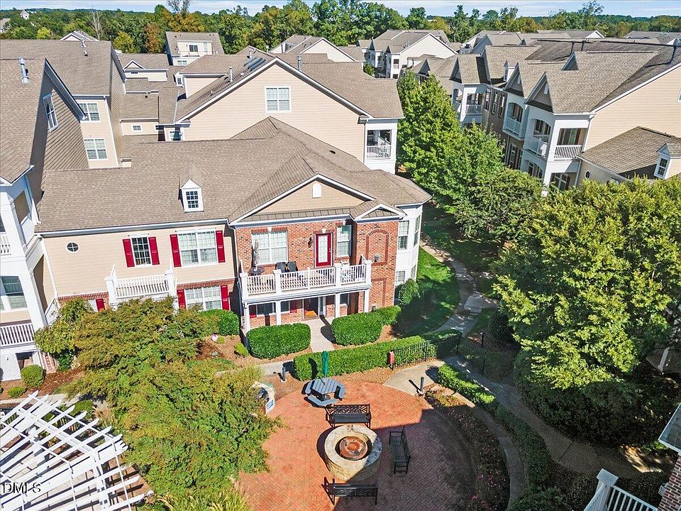 Welcome to low-maintenance living in the heart of Brier Creek! This bright and beautiful ground-level end-unit condo offers the perfect blend of comfort, convenience, and style — all just minutes from RDU Airport and the endless dining, shopping, and entertainment options of the Brier Creek district. Step inside through a no-stairs entry — whether from your attached garage or the front door — and you'll be greeted by a spacious, light-filled living room with engineered hardwood floors, a cozy gas fireplace, and plantation shutters throughout. A dedicated dining room with elegant wainscoting, a chandelier, and large windows makes entertaining effortless. The well-appointed kitchen is surrounded by generous custom cabinetry with pull-out drawers, granite countertops, and a countertop bar with seating, plus room for an eat-in table. High-end stainless steel appliances include a gas cooktop, double wall ovens, and a refrigerator. Retreat to the large primary suite, featuring decorative columns, a walk-in closet, and a spacious bathroom with a walk-in shower, double vanity, and plenty of storage. A versatile secondary bedroom is ideal as a guest room, office, or sitting room, and a hall bathroom with shower is perfect for visitors. Enjoy a true lock-and-leave lifestyle with thoughtful details like ample open parking for guests, and easy outdoor access that makes dog-walking a breeze in this pet-friendly neighborhood. Large windows overlook a serene courtyard, and you're just steps from the community pool, fire pit, and shared grilling area — perfect for relaxing or entertaining. Located just 3 minutes from Duke and UNC primary and specialty care and within 25 minutes of both Duke University and UNC hospital systems, this home offers unmatched convenience. With low-maintenance living, no stairs, and resort-style amenities right outside your door, this condo is truly a rare find in one of Raleigh's most desirable locations.