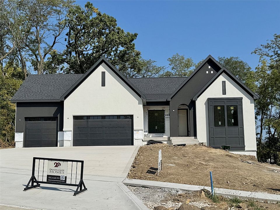 Quality finishes abound in this new brand new CROMWELL ranch plan by Destination Homes on a lot that backs to a pond. STONEWOOD - a gorgeous WDM development with wooded settings offering serene and private views. The designer selections for this home are gorgeous! Very open layout with beautiful tall windows in the back overlooking wooded views. The main floor boasts a den, a chefs-delight kitchen with a large walk-in pantry, and a large dining area. The 1st floor also features a luxurious primary suite, mudroom, and large laundry room. The finished walk-out lower level features a 2nd family room with a fireplace, wet bar, 2 additional bedrooms, an exercise and bathroom. The side-load garage totals 850 square feet. Other Amenities; JennAire kitchen appliances - High Efficiency 96% Furnace with 2-stage Variable Speed Blower - Humidifier - 15 SEER2 Air Conditioner - Programmable Smart Thermostat. Minutes to Jordan Creek Town Center and a similar distance to the amenities at the up-and-coming Kettlestone. This is a great find in WDM and easy access up Grand Prairie Pkwy to the interstate. More lots and plans are available. Call today to learn more about Stonewood. The listing price and amenities are subject to change.