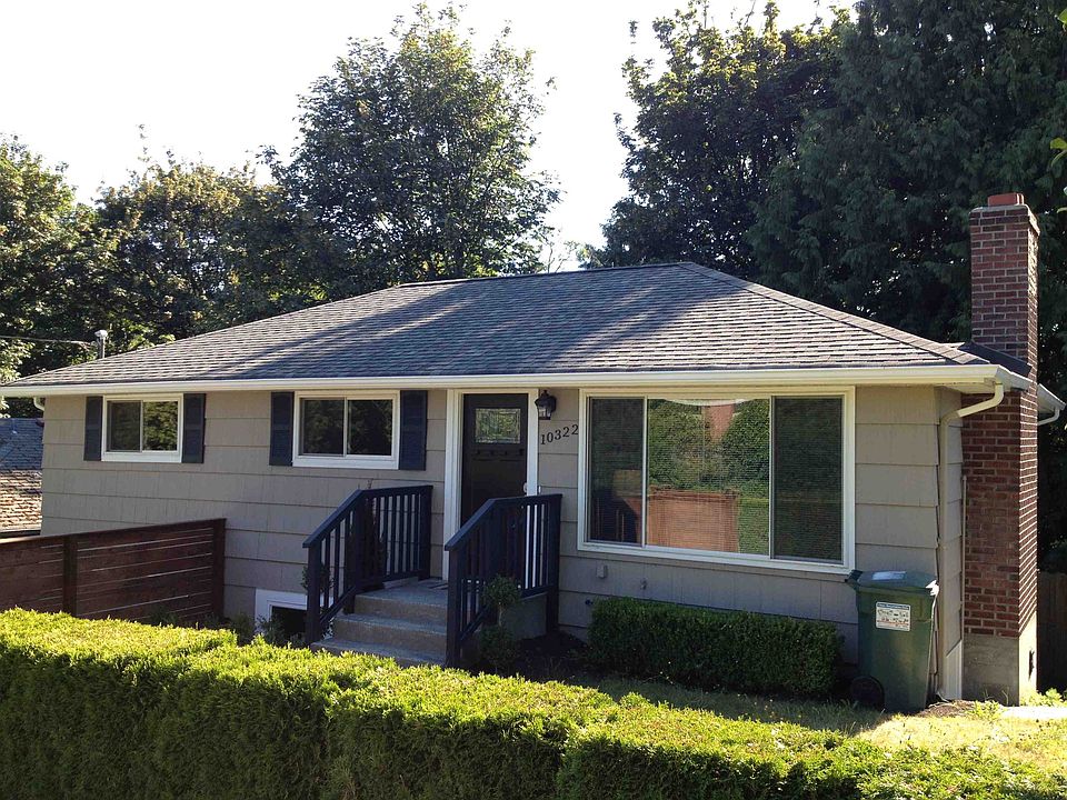Overlooking Thornton Creek sits this well-maintained, recently renovated home. It has 3 bedrooms and 1 full bath on the main floor and 1 bedroom and 1 full bath on the lower floor. Brand new electric, plumbing, carpet on lower floor, paint, red oak floors throughout main floor, kitchen with modern design and bath with solid quartz and tile. Open floor plan with french doors leading out to brand new deck. The large open basement is fully finished and has a large utility room for laundry and storage. The back yard is quiet and secluded with a park-like feel. There is an attached garage and ample off-street parking. Close to public transportation and easy access to UW, Northgate & I-5.