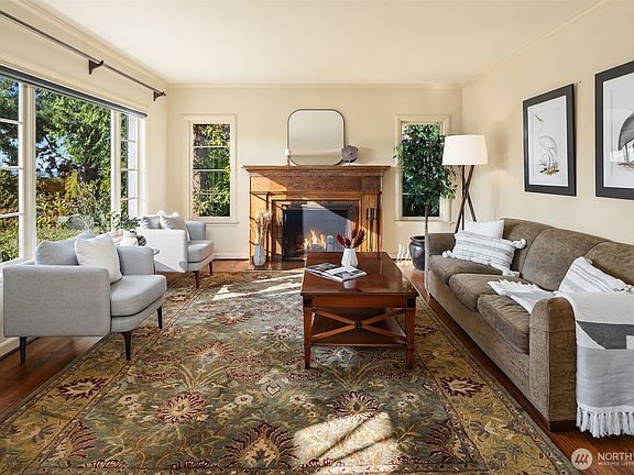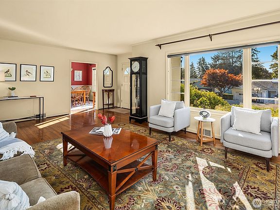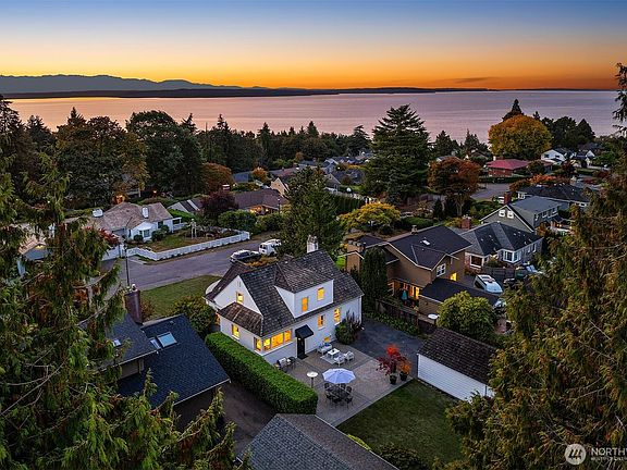 Timeless charm meets unbeatable amenities in this meticulously maintained 1940 classic, offered for the first time in 25 years. Situated on a street-to-street lot with westerly territorial views and glimpses of Puget Sound and the Olympics, this home offers a traditional layout with thoughtful updates. The remodeled kitchen with eating nook complements a sun-filled living room anchored by the fireplace—perfect for entertaining. Three bedrooms span the main and upper floors, with a guest room, ¾ bath, family room, laundry, and generous storage below. Outside, enjoy a 580-sf two-car garage, garden shed, and backyard ideal for play or gardening. Community perks: clubhouse, pool, tennis/pickleball courts, and an enviable private beach park.