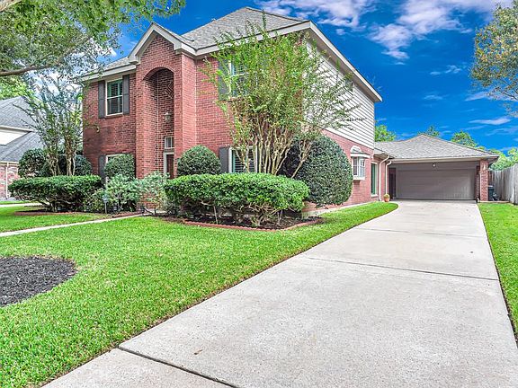 Charming 2-story home located Winchester Country Trails of Houston, TX with extensive upgrades! Exceptional curb appeal w/ stately red brick exterior, sparkling double pane windows & mature landscape w/ LED landscape lighting. Large kitchen w/ solid wood cabinets, Granite & GE Stainless Steel appliances. Spacious living room w/ updated gas log fireplace & wet bar. Cat-5 wiring & plantation shutters throughout. Large master suite w/ 9â vaulted ceilings & fully updated en suite w/ Granite, frameless shower, vanity & huge walk in closet. Upstairs-3 spacious bedrooms, updated bath & game room. Exterior is fully guttered with recent Hardi-Plank siding. Pool sized backyard w/ NO BACK NEIGHBORS. 14âx13â covered patio w/ ceiling fan & recessed lighting! Front & back yard have in-ground sprinkler system & French drains. Full home generator REMAINS. Oversized detached 2 car garage w/ upgraded Porte-Cache. 2017/2018 HVAC & copper plumbing. Roof less than 10 years. Zoned to great CFISD schools!