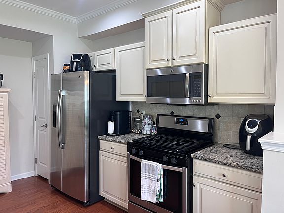 Wonderful end unit town house in Honey Bee. Hardwood flooring on first level, carpeted stairs and second level. Upon entry find office/playroom/virtual school space behind double glass french doors. Hallway leads to open family dining space with gorgeous and updated kitchen. Kitchen features raised panel maple cabinets with soft close drawers, gas cooking, pantry space and great light. Upstairs find three generous bedrooms with great closet space in each. Master includes two walk in closets. Washer and Dryer included.