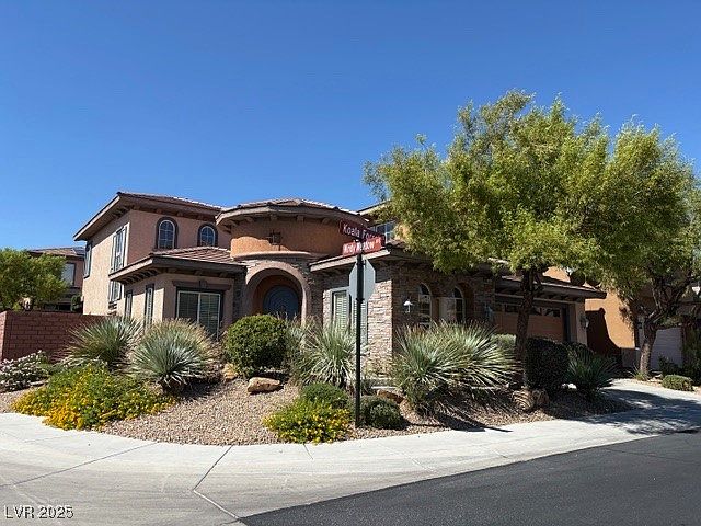 Stunning home in the gated community of Mountains Edge, featuring a clubhouse with a pool and spa. This beautiful residence offers 4 spacious bedrooms, a formal living and dining room, and a large great room with a cozy fireplace. Enjoy the private courtyard and the open kitchen, complete with granite countertops and stainless steel appliances. The downstairs area boasts tile flooring and includes a full bedroom. Additional highlights include a 3-car garage and a beautifully landscaped yard.