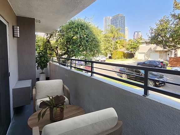 Beautiful front unit newly remodeled unit with laminate & slate tile floorings, balcony, air conditioning, electric fireplace, washer/drye, granite counter tops in the bathrooms & kitchen, stainless steel appliances. Gorgeous tree lined street in a great neighborhood walking distance to Century City. Please note the unit is unfurnished.