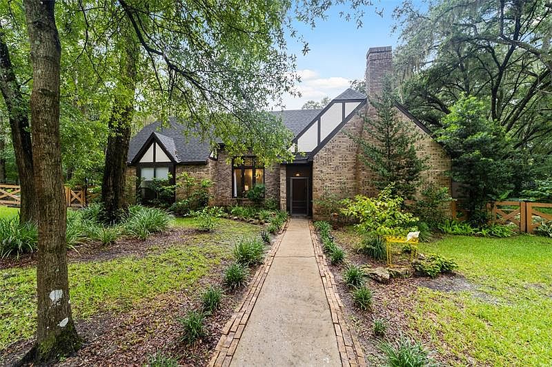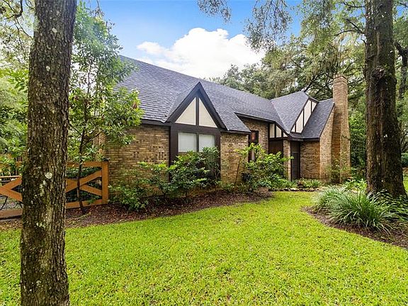Beautiful custom 4BR, 3.5BA pool home on 1.58 acres in Thousand Oaks. The craftmanship is evident everywhere, from the high ceilings and crown molding to the brick fireplace. With a spacious living room and vaulted great room, large open kitchen with eat in dining area, as well as formal dining room, this home has traditional touches with a modern feel. This 4 bedroom home with study has large rooms and high ceilings with over 3400 SQ FT in the home. French doors in living room, master bedroom, and kitchen lead to the great room, with large windows and doors that flow into a private screened deck. The kitchen, with its custom cabinetry and all stainless appliances, including a double oven, is central to everything in the home. The master suite includes a large bedroom, dressing area, walk-in closet, walk-in shower, soaking tub, and a double vanity. The remaining bedrooms are large: one adjoins an office/study and has a full bath allowing for a guest suite if desired, and another has a half bath. This Tudor-style brick home with 6" walls, double paned windows and Clay Electric will keep your energy costs down. Great outdoor space abounds with a variety of fruit/avacoado/olive trees, screened pool, screened deck, and 1,500 sq. ft. workshop that includes power (220V) and single garage with an A/C studio above.
