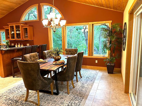 This totally renovated home sits on a huge 1 Ac lot and has Nine Mile Creek literally in the back yard. The Garage is Double Deep (4 car). Tons of High End Upgrades with New Mechanics! Newer Roof! Steel Siding! Five BR + Office (could be ML Laundry) Fabulous Kitchen has Vaulted Ash Ceiling, Heated Tile Floor & Cherry Cabinets. Primary BR/BA space is incredible. Walk-in shower, sep tub & heated floors! Huge ML Living Rm with Fireplace to Cozy up to. Walkout Basement to Backyard with Frequent Wildlife visitors. Family Rm has mini kitchen/bar. Add'n Sitting Rm w/fireplace in LL. Sit in the Enclosed Porch or on the Patio, Listen to the Birds and the Creek and Soak in this Amazing Setting. It Can Be Your Private Oasis.