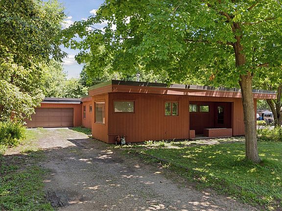 Architect-designed Mid-Century Modern rambler featuring 3 bedrooms, office, dark room, mudroom, and a 2-car garage on an oversized lot in a quiet, tree-lined neighborhood. This rare Mid-Century Modern opportunity boasts clean lines, large windows, redwood siding and strong architectural bones—ideal for those looking to restore and preserve a true MCM original. Surrounded by mature trees and generous lot sizes, this home offers both privacy and potential. With nearly 2,000 square feet of finished space, it’s perfect for Mid-Century enthusiasts ready to renovate and create a one-of-a-kind modern retreat. Originally built as a 2-bedroom home, the front porch was converted into a third bedroom in 1990 by Sybil Graffunder, daughter of renowned architect Carl Graffunder. Original architectural blueprints for the remodel along with plans for a future screened porch addition will transfer with the sale. Don’t miss the chance to make this timeless architectural gem shine again!