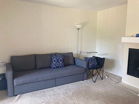 Bright, clean and well-maintained home with lots of natural light, ceiling fan, A/C and cozy fireplace. Upgraded kitchen has gas stove, built in microwave and dishwasher, as well as a newly installed sink and disposal. Bathroom is newly renovated with new tiles and bathtub. Spacious baloney and storage. Carpeted throughout the house, plus laundry in the unit. One covered parking spot. Community complex boasts a beautiful pool/ spa and gym.