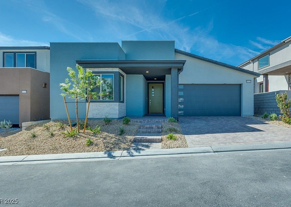 Brand new modern single story home near Mt Charleston and Skye Canyon! This new community is located near new shops, entertainment, dining, and you can enjoy the community pool and park. The open floor plan makes the home feel very bright and spacious. The kitchen includes stainless steel appliances, oversized island, and walk in pantry. The great room is just off the kitchen and overlooks landscaped backyard. The primary bedroom is tucked away from the secondary bedrooms. The primary bath has double sinks, and separate shower and bathtub. The backyard has been fully landscaped and is easy to maintain. Enjoy the peace and quiet with no neighbors behind you!