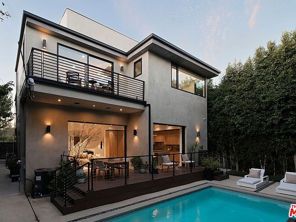 Discover the elegance of this recently-built architectural contemporary, with bright, sunlit interiors, and versatile indoor and outdoor spaces ideal for entertaining. Step into a welcoming foyer, adjacent to a guest suite and powder room, where high ceilings and hardwood floors meet expansive walls of windows. This flows into a spacious great room, highlighted by an open kitchen equipped with premium Miele appliances. Disappearing glass doors connect seamlessly to a private backyard featuring a pool and spa. The upper level, with multiple balconies, includes a generous primary suite with a large walk-in closet and luxurious en-suite bathroom, along with two additional well-appointed bedrooms, each with its own private bath. The lower level offers a light-filled basement with a family room, home theater, wine room, laundry area, storage space, and two more bedrooms with bathroomsperfect for family or guests. The home also boasts a convenient elevator for easy access. Atop it all is an expansive roof deck, complete with an outdoor kitchen and fireplace, offering stunning 360-degree views of Century City, the Wilshire Corridor, and Santa Monica. This gated property includes a two-car garage and is situated in a desirable neighborhood with close proximity to Cheviot Hills Park, Rancho Park Golf Course, and the Century City shopping mall.