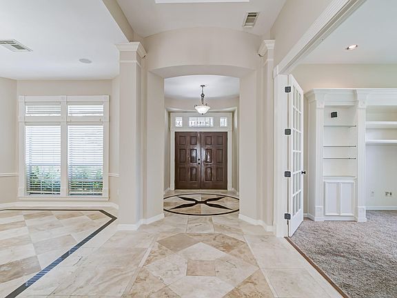 Nestled on a corner lot in a quiet, established Houston neighborhood, this elegant all-brick home boasts impressive curb appeal and a peaceful fountain at the entrance. Grand double doors open to a rotunda with soaring 14' ceilings and inlaid granite and travertine floors. The sunlit, open-concept living area features a cozy fireplace, while the chef’s island kitchen offers granite countertops, walk-in and butler’s pantries, and generous storage. The split floor plan ensures privacy with a spacious primary suite and a luxurious en-suite bath, plus a separate guest suite with full bath—ideal for visitors or a private office. Two additional bedrooms, a full bath, and a powder room complete the layout. Enjoy the large, fully fenced backyard with a full sprinkler system—perfect for entertaining or relaxing. Added bonuses include security doors, a rare 3-car garage, and zoning to top-rated CCISD schools. Don't Miss it!