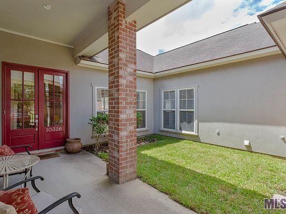 From the moment you enter through the double wrought iron gates, you will know you have found that perfect, stylish, unique home! 12 FT ceilings with can lighting welcomes you to the courtyard entryway in the twin 9 foot French door entry. Open living and dining opens to the kitchen with views of the front courtyard through a wall of windows, and on the opposite wall windows overlooking the lushly landscaped backyard complete with outdoor lighting and sprinkler system! Gleaming ceramic flooring, gas log fireplace, crown molding, wood blinds throughout, kitchen cabinetry custom finished in an antique wash, island with seating for two (framed by double windows overlooking the front courtyard), and pantry showcase the living area. Two bedrooms are located along the front of the home sharing a pristine bath. The master suite is situated at the rear of the home and features a tray ceiling, soothing colors, views of the landscaped backyard, and a master bath with separate his/her vanities, jetted tub, and large separate shower. The master closet is a spacious square walk-in - abundant storage! Off the the kitchen, enter another covered porch area that is perfect for your outdoor kitchen, then stroll to the brick-stoned patio with curving edges that mirror the lush landscaping found in the large fenced backyard. Relax with views of the palm tree and flowers. At night it is stunning with landscape lighting. A perfect home for living and entertaining - from the entry courtyard to the open living/dining/kitchen to the patio. Style, quality, and natural light all combine to make this an exceptional home. Just unpack and enjoy!