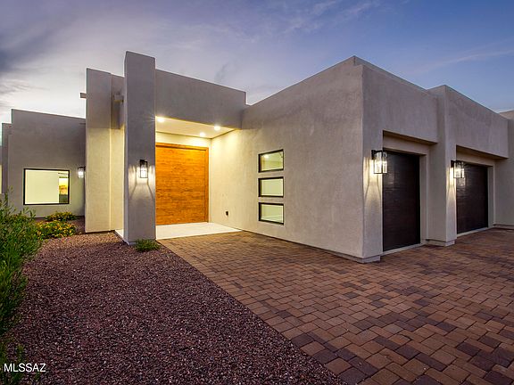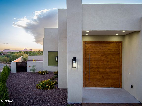 Absolutely stunning 360 degree panoramic mountain & city views will capture your breath as you enter into this newly constructed & exceptionally upgraded contemporary home on a huge 3.52 acre lot. This 4 BD/4BA/3,320 Sq.Ft/3 car garage home has an inviting & open concept floorplan. Enter through the large rotating solid wood door & into the spacious family room. Separate living area w/wet-bar & wine fridge. Chef's kitchen offers beautiful quartz counters w/waterfall design on the kitchen island, custom cabinets & pulls, upgraded stainless steel appliances, custom light fixtures, breakfast bar & walk-in pantry w/built-ins. Master suite is spacious w/slider to patio, dual vanities, soaking tub, tiled walk-in shower & large walk-in closet w/built-ins. 2 Guest bedrooms are en-suite **(MORE)** ....w/walk-in closets. All tile floors throughout, custom & solid wood doors & trim, light fixtures, tray ceilings & more highlight this custom built home. Backyard offers a large covered patio, artificial turf, professionally landscaped & panoramic views. Conveniently located close to schools, shopping, restaurants & more in Oro Valley's desirable community of Chaparral Heights.