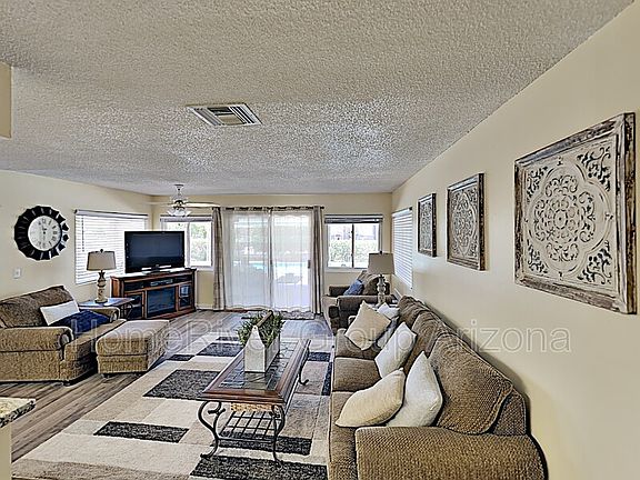 AVAILABLE DEC 2024- April 2025. 55 and older Age-restricted community. Spectacular modern retro! Remodeled oversized 2 bedroom home has been redone with new stucco exterior, two new bathrooms, & new appliances in kitchen. This seasonal rental comes with all the fun including a pool, backyard, BBQ oasis, complete with 2 outdoor seating areas to enjoy your coffee or eat a meal. Bedrooms feature large closets, washer and dryer and more. This home also allows access to all the Sun City golf and activity centers for a small registration fee. There is a 1 pet and 20 lbs. maximum. No cats are allowed. $65 Application Fee, $150 Lease Admin Fee due at move in. Pets accepted with restrictions and Pet Fee of $250/pet and Pet Rent of $25/month per pet, Applicable taxes and fees. Offered through HomeRiver Group-- Betty Tannery, Broker. Raising Awareness - HomeRiver Group does not advertise properties on Craigslist, Facebook Marketplace, LetGo or other classified advertising websites. If you believe one of our properties has been listed on these sites by a scammer, please notify the office. All info/data contained herein is deemed to be accurate, but its not warranted.