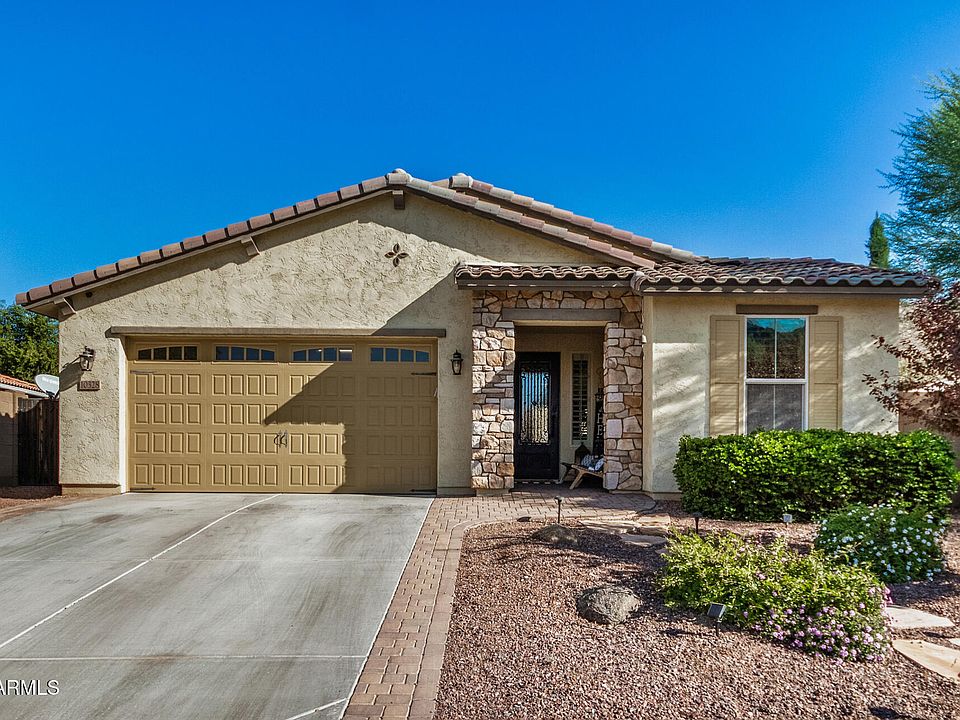 Experience elevated desert living in this exceptional home located in north Peoria's highly sought-after Tierra Del Rio North community - complete with a custom pool and spa. From its impressive stone-veneer exterior and lush mature landscaping to the RV gate and spacious two-car garage, this home offers undeniable curb appeal. Inside, over 2,100 sq.ft. of impeccably crafted and beautifully updated living space awaits, featuring four bedrooms, a flex space and three full bathrooms--designed to accommodate a variety of lifestyles with ease. A sophisticated front entry leads into a welcoming foyer, opening to a versatile den/office, dining area and a light, bright great room. Modern flooring, custom wall finishes, plantation shutters and a stunning fireplace create a refined yet... comfortable ambiance. The chef-inspired kitchen is a showpiece, boasting crisp white cabinetry, stainless steel appliances, luxurious quartz countertops, a subway-tile backsplash and an expansive island with a breakfast bar. The primary suite offers a true retreat, highlighted by a spa-like en suite bath with dual vanities featuring vessel sinks, a beautifully tiled walk-in shower and a custom-organized walk-in closet. Step outside to your resort style private oasis--complete with extended paver-covered patios, gazebo, cozy fire pit area, mountain views and a custom-designed pool/spa that elevates outdoor living to a new level. Brimming with high-end touches and upgrades throughout, this home is a rare find. Ideally situated near Loop 303, shopping, dining, schools, and recreation. This home is definitely A MUST SEE!