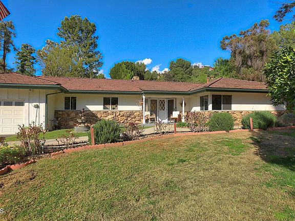 Located in the highly sought-after community of Shadow Hills, this beautiful pool home is an urban retreat hidden in the city. Set above the street on a quiet cul-de-sac, the spacious flat front yard is entirely fenced and leads to an inviting front porch, where you can relax while enjoying a view of the foothills. Step inside to the formal living room with wood plank vinyl floors and stone fireplace that flows wonderfully between the multiple entertainment areas of the house. The huge eat in kitchen was extensively renovated with new cabinets, lighting, quartz countertops, tile backsplash and stainless-steel appliances, and it is completed by a separate butler's pantry for additional storage. Off the dining area is a large bonus room with sliders leading out to the covered brick patio and BBQ area. Currently being used as a music studio, this room could easily be a fourth bedroom, den, office, or gym. Down the hall you'll find the primary bedroom suite, which includes both a wall of sliding closets and a gigantic walk-in closet with built in shelving. The bedroom has direct access to the fully renovated primary bath, that showcases new flooring, vanity, jetted tub and separate spacious rainforest shower. Two additional bedrooms complete the east wing of the house and a second three quarter guest bath services the west wing. The house has an attached two car garage with EV charging and a new central HVAC system. Outside, the tiered backyard is an ideal example of indoor-outdoor California living at it's finest. The large brick patio is an extension of your indoor space and even includes an outdoor kitchen. The extensive land in front has endless potential, with room for an ADU, RV parking or sports court. The yard is capped off by a sparkling gated pool perfect for summer entertaining. Nurture your creative spirit in this estate sanctuary in the hills!
