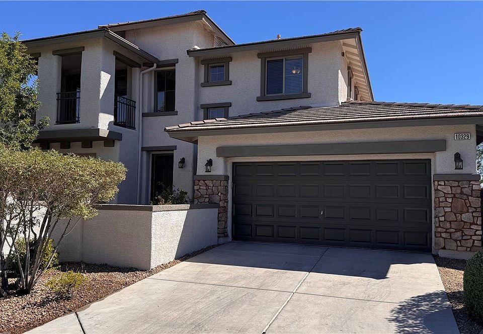 SUMMERLIN MOUNTAIN VIEWS! 2 balconies, 4 bedrooms, 3 full bathrooms and RARE 3 car garage (lowest priced house in Ladera with a 3 car as of 9/20). UPSTAIRS LOFT + FULL BEDROOM & BATHROOM DOWNSTAIRS. BEDROOMS DO NOT SHARE WALLS! “Pool sized” backyard with grassy lawn & trees. ENTIRE EXTERIOR REPAINTED (10/4/25) with Sherwin Williams Super 20 YEAR GUARANTEE. UPDATED w/new paint throughout, window shades, maple banisters, luxury vinyl flooring, painted KITCHEN cabinets, quartzite countertops, stainless steel appliances and new sink & surround sound. MOUNTAIN VIEWS from Kitchen. LADERA is a sensational neighborhood in Summerlin South with a pool, parks and playgrounds. Just minutes from Bishop Gorman, Downtown Summerlin and Whole Foods. House has been carefully maintained and updated by long term ownership.