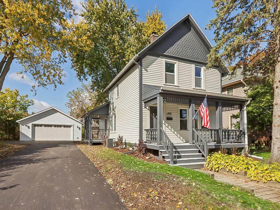 Enchanting & updated modern farmhouse in the heart of Grafton is sure to please. Sunlight streams across the gleaming maple flooring in the main living areas. You'll appreciate the large living room with archway to a charming dining room complete with 2 built-in corner China cabinets. The dazzling new kitchen with quartz counters & stainless appliances will delight the cook in your family. You'll appreciate the 1st floor office or flex room space, new full bath & the laundry all on the main floor. The 2nd floor offers 3 spacious bedrooms with good sized closets & a new full bath. Step outside on the charming side porch and follow the Flagstone walkway to the new 2.5 car garage, oversized driveway & spacious backyard. Walk to restaurants, parks, Grafton festivities & Interurban Trail!
