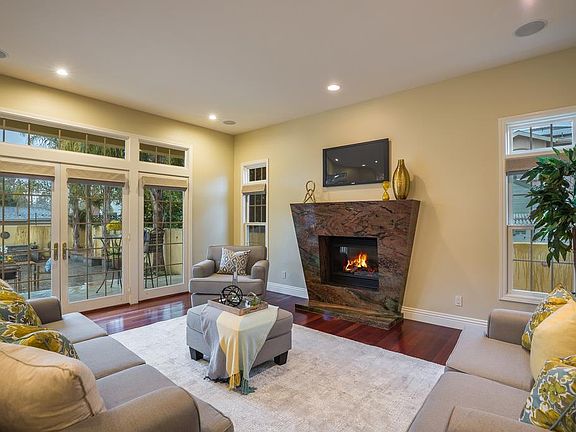 Custom Willow Glen charmer built in 2007 with open floor plan, inviting living spaces and close to downtown. This beautiful home offers 12 foot ceilings, dimmable recessed lighting, Cherry hardwood and natural Travertine floors. In the kitchen you will find granite slab counters, newer dishwasher, high end Viking refrigerator and Viking gas stove with pot filler. A large center island with prep sink, breakfast bar, informal dining space and an office area. Stunning formal dining room off the butlers pantry. The downstairs bedroom has a full bathroom and extra storage. Master suite upstairs at the rear of the home has a spacious private patio, dual sinks in the bathroom, shower and tub for two. Skylights and dual pane windows offer lots of natural light. Central air conditioning, central alarm and water softener. The backyard offers newer pavers and built in BBQ. The finished garage offers power for EV charging. Close to downtown Willow Glen and the newly installed 3 Creeks trail.