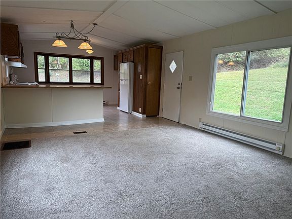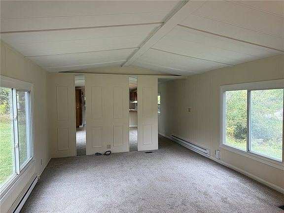 Extremely clean and neat mobile home with 3 bedrooms and a full bath on over a half acre of private land. The bedrooms are ample sized, and the full bath has dual access from the primary bedroom and hall. The living room is bright and flooded with natural light, wall to wall carpet and open to the kitchen with a counter suitable for 3-4 seats. The kitchen is equipped with a dishwasher, refrigerator and electric stove. There are hook-ups for a washer and dryer and 4 off-street parking spots. The yard is great for outside activities. The heat is electric baseboard/oil heat, central AC. No pets.