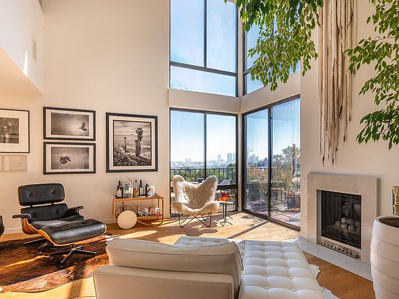 SOPHISTICATED URBAN PENTHOUSE LIVING. Experience city living at its finest in this chic, designer-renovated contemporary penthouse boasting million-dollar views. Nestled in Upper West- West Hollywood within an architecturally significant, award-winning building designed by Ron Goldman FAIA. An exceptional residence offering the perfect blend of modern luxury and California sophistication. This stunning two-bedroom, two-bathroom penthouse features a dramatic living room with soaring 16-foot ceilings, floor-to-ceiling windows, and a private balcony showcasing breathtaking views. The thoughtfully designed layout includes a formal foyer, an open dining living area along with a dialed in theater with surround sound, main floor guest roomwith bath. The gourmet kitchen impresses with custom cabinetry, premium Liebherr refrigeration, gas range and a Uline wine cooler for the discerning entertainer. The upper master suite provides a serene retreat with an expansive walk-in closet, a newly renovated spa-inspired bathroom and direct access to the deck. Throughout the home, beautiful 10-inch wide-plank French white oak floors bring warmth and relaxed West Coast charm to the modernist design aesthetic. Premium appointments elevate the living experience, including an automated lighting system, state-of-the-art AV and sound systems, convenient motorized window treatments, and brand-new climate control units. The crown jewel of this remarkable penthouse is the private 600+ square foot rooftop deck, perfectly appointed for both intimate gatherings and grand entertaining while offering spectacular panoramic views. Builtin TV, gas fire pit and dining & living venues. Residents enjoy access to resort-style amenities including a gorgeous pool, spa, and meticulously maintained grounds. The prime location places you just steps away from the exclusive Soho House and renowned dining at BOA, Edition Hotel, Bird Streets Club, San Vicente Bungalows etc putting the best of West Hollywood at your doorstep.