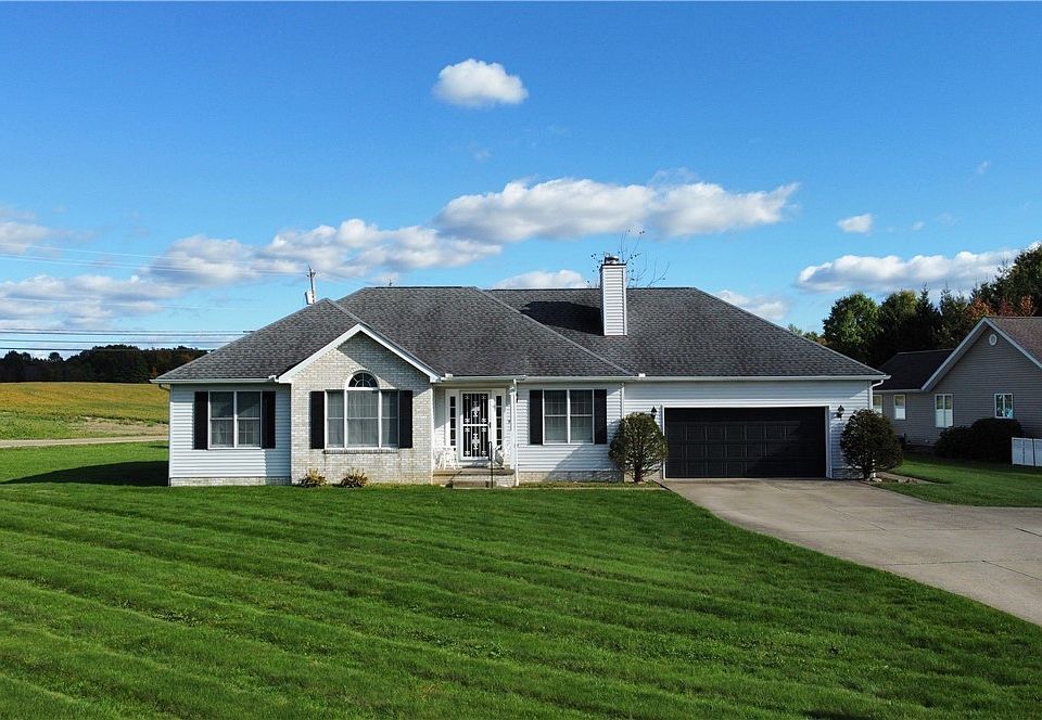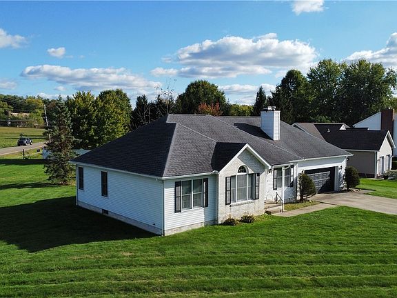 One Owner, 1609 Sq. Ft., One-Story Home with Three Bedrooms, Two Full Baths, Corner Lot, Countryside Estates. Perry Twp., Columbiana Co., Salem CSD. Live Onsite with Online Bidding Available on Real Estate. ABSOLUTE AUCTION, all sells to the highest bidder on location. ONLINE AND LIVE ON-SITE BIDDING WILL BEGIN SATURDAY, NOVEMBER 1, 2025, 10:00 AM - REAL ESTATE SELLS AT 11:00 AM. One-story home built in 1992 with a concrete drive, attached finished two-car garage on .58 acres. Features a living room with a cathedral ceiling, a fireplace with built-in bookcases, and a formal dining room. Eat-in oak kitchen with dining area, laundry closet, and rear office or den with doors to back deck. Two bedrooms (one with a cathedral ceiling) and a hall bath, plus a master with a tray ceiling and a full private master bath. Full basement, FA gas heat, and CA. Very clean and well-maintained home.