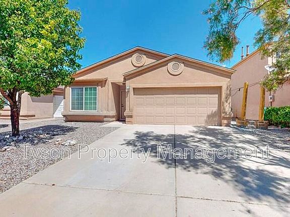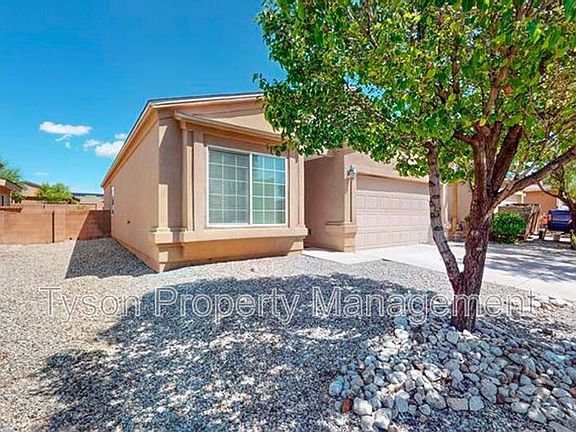 Discover the perfect blend of comfort and elegance in this stunning 3-bedroom home nestled in Northern Meadows of Rio Rancho. Experience the light, open floorplan featuring the spacious living room adorned with a modern ceiling fan which seamlessly transitions into the well-appointed kitchen with striking blue cabinetry, all appliances included. Three full bedrooms and two bathrooms complete the floorplan including a primary suite with a private ensuite bathroom. Washer and dryer conveniently included in a separate laundry area. The outdoor space is a backyard oasis, featuring lush turf and a cozy sunshadeideal for savoring those balmy summer evenings.
