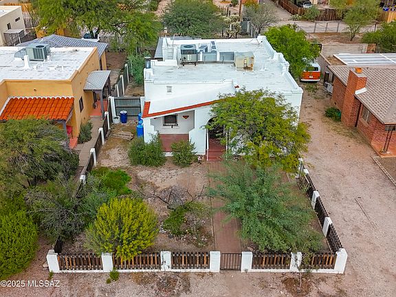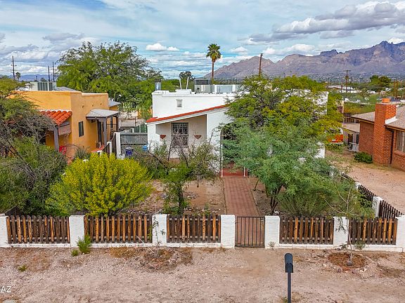 Discover this charming historic 2-bed, 1-bath home near the University of Arizona, offering beautiful mountain views and timeless character. The cozy living room features a wood-burning fireplace, while wood flooring runs throughout the house for a warm, classic feel. The fully gated front and back yards provide privacy and space to enjoy the outdoors. The expansive backyard includes a large workshop, vibrant cactus and flower beds, and convenient rain barrels to help water your plants. Located close to grocery stores, shopping centers, and hospitals, this home blends comfort, history, and convenience in one inviting package.