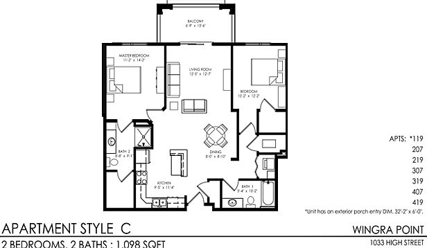 Gorgeous 2 bedroom 2 bath apartment home! Open floor plan with dramatic 9 foot ceilings, granite island, stainless steel appliances, and washer/dryer in unit. Enjoy two rooftop terraces with beautiful views of the lake and capitol or relax on your private balcony or patio. The property also has a club room with a pool table, darts, and big screen television. Please note, most first floor apartments have convenient exterior access as well as interior corridor access and are dog friendly.