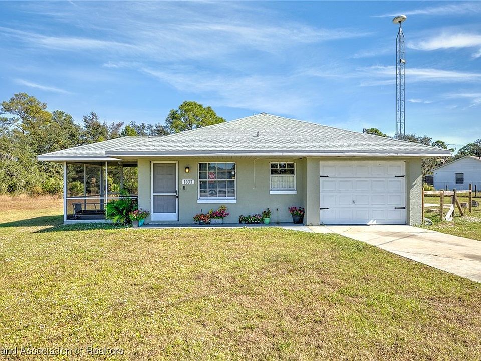 Quaint two bedroom, two bath home with tile throughout. The kitchen features stainless appliances, ample cabinets and a passthrough to the living room. The living/dining room has large sliding doors that open to a screened in porch. A nice space for lounging or sipping your morning coffee. The master bedroom has its own bath with a tub/shower combo and an updated vanity. The one car garage includes a laundry sink and washer/dryer hookups. New roof 2024, new A/C and septic was pumped in November 2025 to give peace of mind for years to come. This is a great starter home or a great investment opportunity!