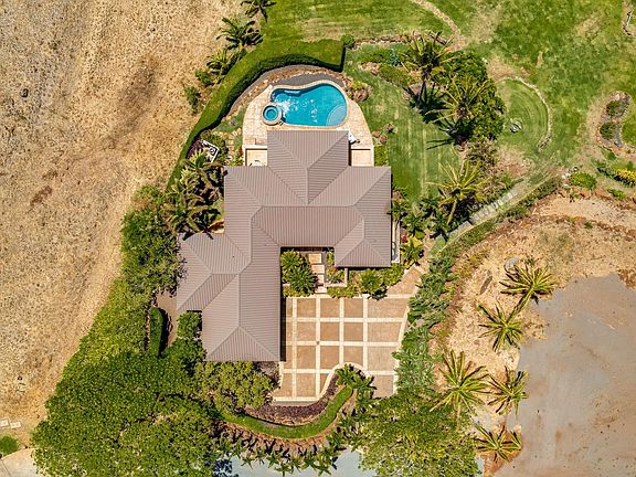 Welcome to 1033, a true gem that offers a touch of luxury in a serene setting. Perched atop the hill in Launiupoko, this property presents unobstructed panoramic views of the Pacific and the outer islands of Molokai, Lanai, and Kahoolawe. The sunsets from this spot are simply stunning! 1033 Kai Hele Ku offers options: move into the existing 1521 sq. ft. architecturally charming home and live happily ever after, using the remaining land for a home farm, or convert the existing house to meet cottage or Ohana standards and build your Maui dream home next door! You may also choose to "condominium-ize" (CPR) the property and sell a portion. The choice is yours! Also, private financing available to qualified Buyers. The property's entry drive is bordered by elegant stone walls and leads you through well-maintained landscaping to the recently renovated 3-bedroom, 2.5-bathroom home. A central courtyard serves as the gateway to the primary wing and the bright and airy Great Room, home to the main living room and kitchen. The space is defined by vaulted ceilings and a wall of sliding pocket doors that seamlessly connect the interior to the lanai, offering mesmerizing outer-island views. The kitchen features stainless steel appliances and a functional center island that helps to define the area, while underfoot, travertine floors add an element of timeless elegance, enhancing the overall ambiance. A spacious lanai wraps around the rear of the home and provides a covered area for relaxation or dining, day or night, rain or shine. The gorgeous pool and jacuzzi allow guests to enjoy the striking views while recreating. The home's Primary bedroom is located off of the Great Room. It boasts high ceilings and an en-suite bath featuring a soaking tub offering views of the private outdoor shower courtyard. Sliding doors from the bedroom provide direct access to the lanai and yard. On the opposite side of the home, a separate two-bedroom section offers practicality and privacy. The two rooms are separated by a full bath, and a hallway outfitted with a counter and fridge. Both bedrooms feature direct access to the lanai and backyard. While the bedrooms are in a separate area, a connecting roof ties both sides together. Outdoors, you'll discover a terraced yard with lovely rock features, mature ornamental trees, a grove of coconut palms, and even a dragon fruit plantation. The property also features a sizable fenced pasture, adding to the appeal.