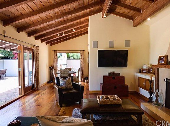 Situated on a quarter acre in the heart of Pacific Palisades, this gorgeous home has privacy, ocean and tree views, and year-round indoor/outdoor living. After arriving up the natural stone driveway, you're greeted by antiqued wooden gates that open up to a Santa Barbara style courtyard featuring a soothing fountain. This 3bd 2bth home has spectacular hardwood flooring, exposed beam ceilings, updated bathrooms and kitchen with top of the line appliances. The French doors throughout let in lots of sunshine and utilize the wrap around Spanish tile patio. Enjoy the lush, mature landscaping during the day and at night the custom lighting showcases the beauty of this home. The large viewing deck is prefect for entertaining or enjoying the sunset over the Pacific Ocean. Ideal location- walking distance to village, restaurants, nature hiking trails, and award winning schools.