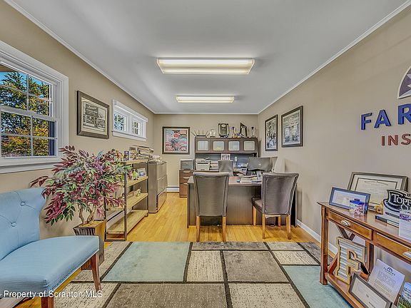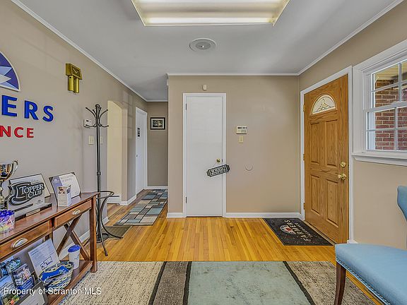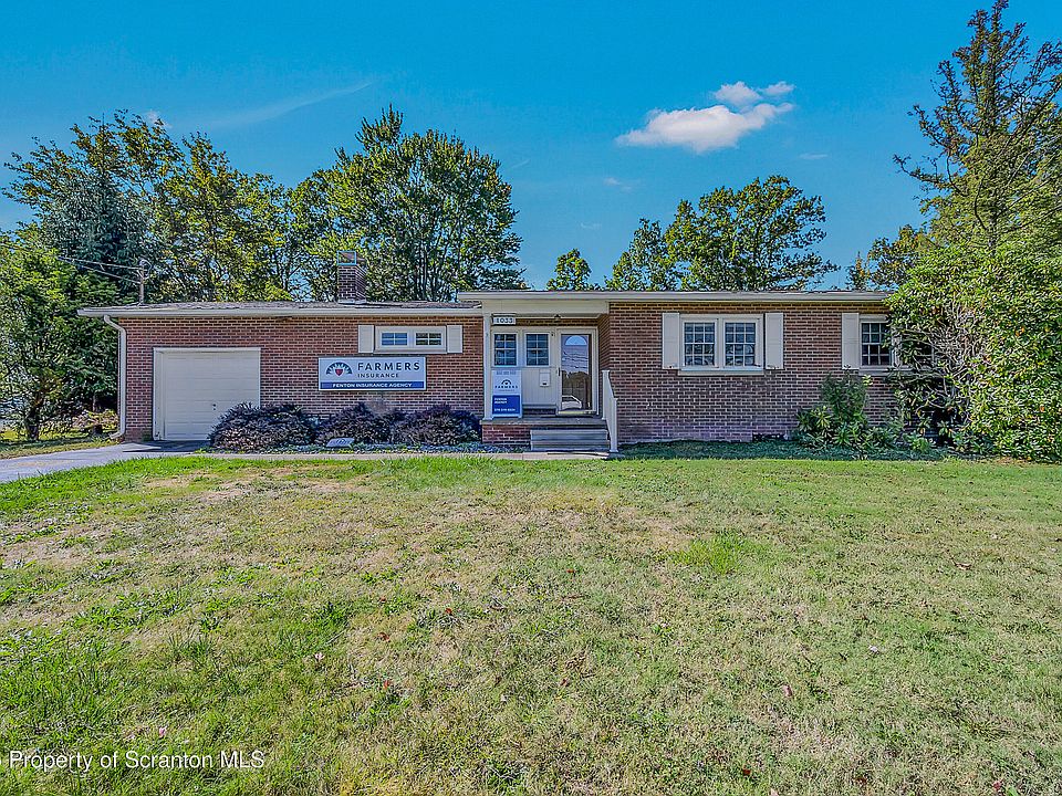 Stunning 3-bed, 1-bath brick ranch in Abington Heights School District, nestled on the golf course with breathtaking Scranton Country Club views. Zoned for residential or professional use, this spotless home boasts a newer roof, windows, central air, a flat yard with covered patio, and a full basement perfect for a man/lady cave. Hardwood floors, granite kitchen counters and plenty of off-street parking. Currently being used as a real estate and insurance agency. If you enjoy tennis and/or golf this property was made for you ! NO SHOWINGS UNTIL AFDTER OPEN HOUSE OCTOBER 4, 12PM-2PM