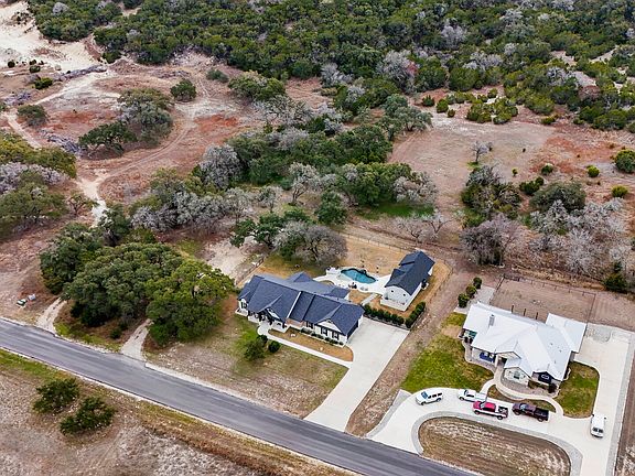 Welcome to Your Dream Home - A Texas Hill Country Oasis nestled amidst more than 30 mature oak trees, this stunning residence offers panoramic views that capture the essence of the Hill Country-perfect for those who appreciate breathtaking topography, lake life, and entertaining. With the ideal location and thoughtfully designed floor plan, this home blends privacy with style in an effortless way. Inside, enjoy an expansive, open layout, with beautiful wooden shutters across all front-facing windows, providing both seclusion and charm. The home is equipped with a water softener and is pre-plumbed for a propane-powered generator, offering added convenience and peace of mind. Step outside to discover your own private oasis. The expansive 1,200 square-foot outdoor living space is nothing short of extraordinary, featuring a fully insulated, temperature-controlled fame room, a versatile storage room, a convenient laundry room closet, and a full bath. The adjacent sport-style swimming pool is an entertainer's dream, featuring a tanning ledge, waterfall, volleyball net inserts, and poolside speakers. And with a 85" TV under the covered patio, you'll never miss a moment of game day action. The property is beautifully landscaped, with a professionally installed irrigation system and a gated yard offering plenty of space to play or relax. The nearly 4-acre lot is flat and ideal for any outdoor project-whether it's an additional outbuilding or more. Thers's even a 300-amp connection in place for powering a fully functional Casita or workshop, with a septic system pre-planned to accommodate these additions. Located in the highly desirable Mystic Shores community, residents enjoy unparalleled amenities, including a 30-acre lake front park, waterfront access to both Canyon Lake and the Guadalupe River, two pools, a community center with a fitness area and kitchen, and a 200-acre nature preserve. Other features include tennis and pickleball courts, basketball, volleyball, a playground, and multiple covered picnic areas with grills by the lake. Plus, you're just minutes from Canyon Lake and several boat ramps for endless water adventures. This home offers the perfect blend of luxury, comfort, and natural beauty. Come see for yourself and experience the best of lake life today!