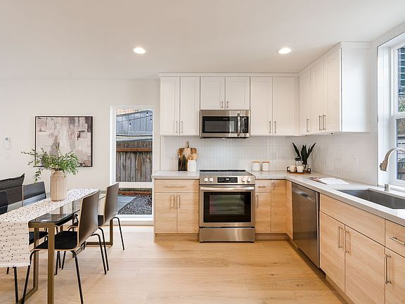 Discover this contemporary home tucked into the vibrant Maple Leaf community. The main level offers an inviting open layout with clean lines and a bright, modern feel. Tall ceilings and expansive windows fill the interior with natural light, creating a warm and spacious atmosphere. The kitchen is outfitted with custom-built cabinetry, stainless appliances, and thoughtfully selected lighting. Each bedroom provides generous space, built-in storage, and private bathrooms featuring upscale finishes and rainfall-style showers. Efficient heating and cooling are provided by individual mini-split units on each floor, along with the convenience of laundry on the upper level. A private garage accessible from the alley adds ease to everyday living. Located just minutes from neighborhood cafes, parks, and essential services, this home offers a polished, move-in-ready living experience in one of Seattle's most desirable areas.