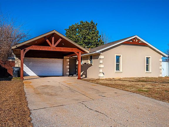 The previous owner updated this home so it was done sometime after 02/2020. Brand new updated look on the outside. Huge carport added. 2 car garage. New appliances in 2020. Countertops and backsplash have been updated. Full bath remodel. Half bath off of primary bedroom. All tile flooring. Sits in a quiet cul-de-sac close to Santa Fe Elementary, I-240, I-35, shopping and restaurants. Lease purchase option available with 7% down, third party. Don't miss out on this one! Call today!