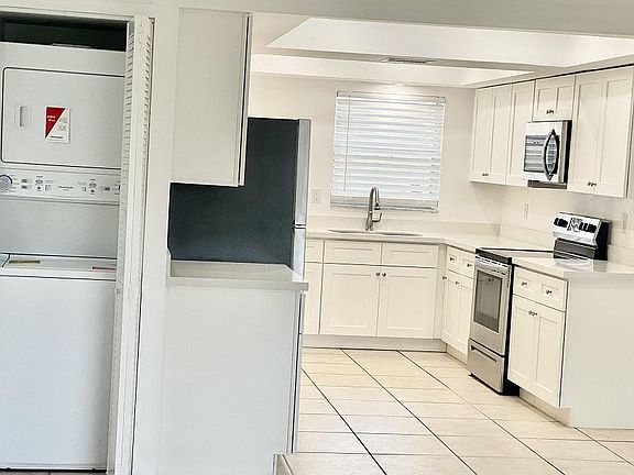 Brand new kitchen cabinets, quartz countertops, and stainless appliances,including Washer and Dryer. Come home to a quiet neighborhood on a cul de sac. Apartment has Tiled floors throughout. Bathroom has tub with tiled shower. Central AC and off street parking.. LGBTQ+ friendly